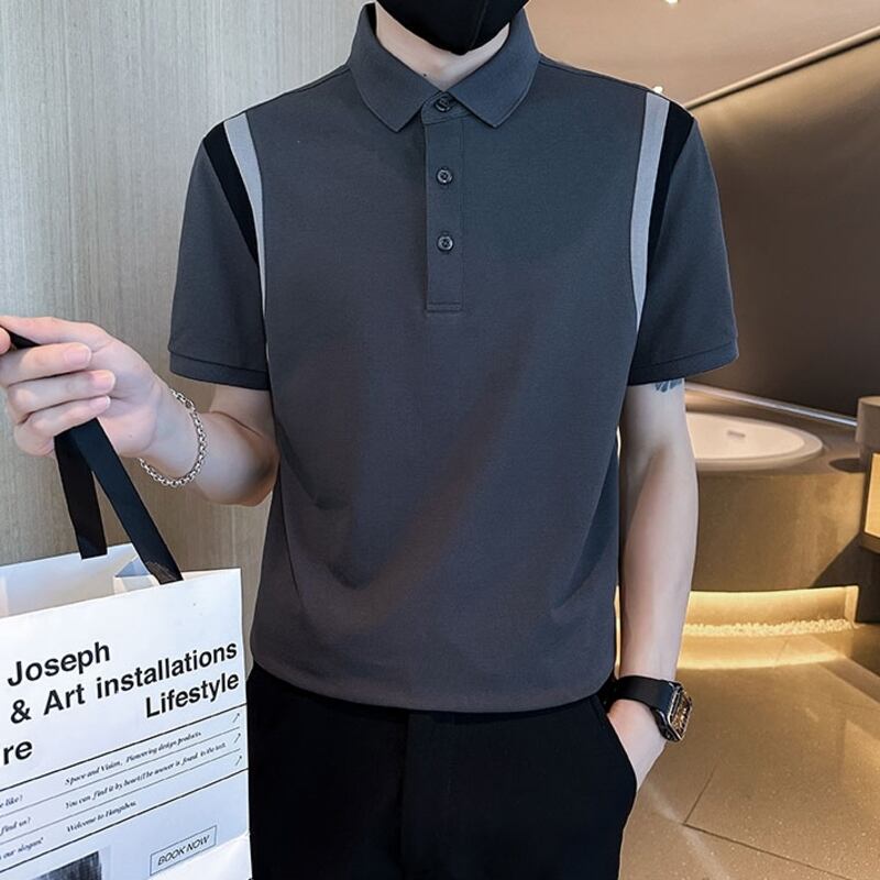 カラーブロックが洗練された印象を与える半袖ポロシャツ。