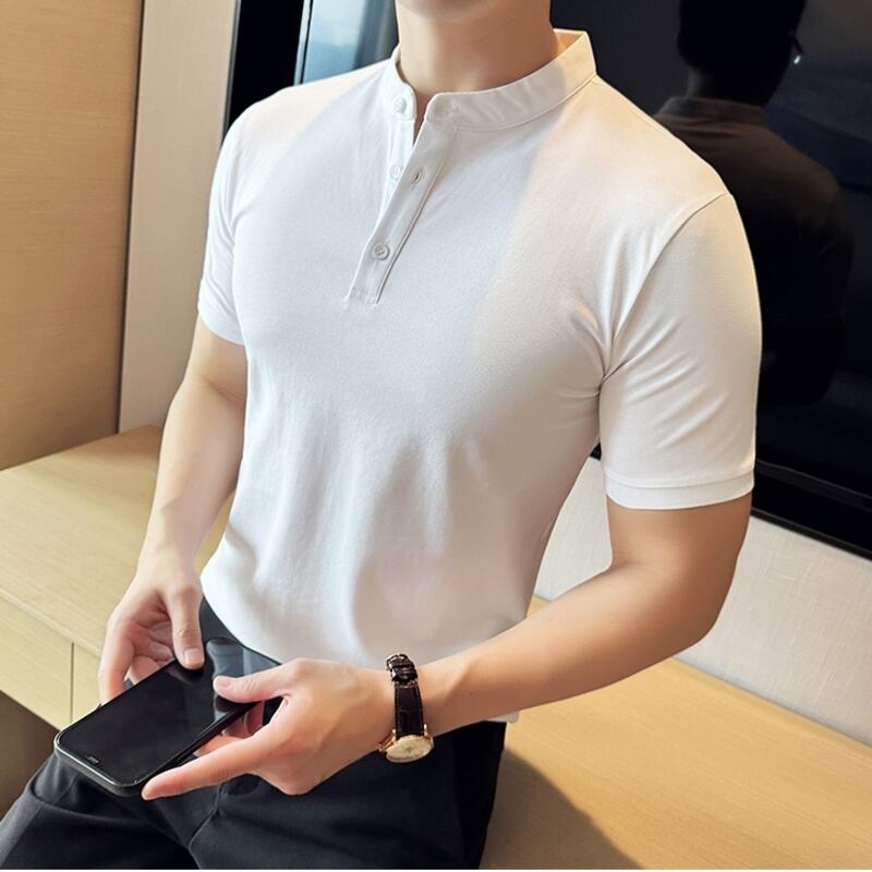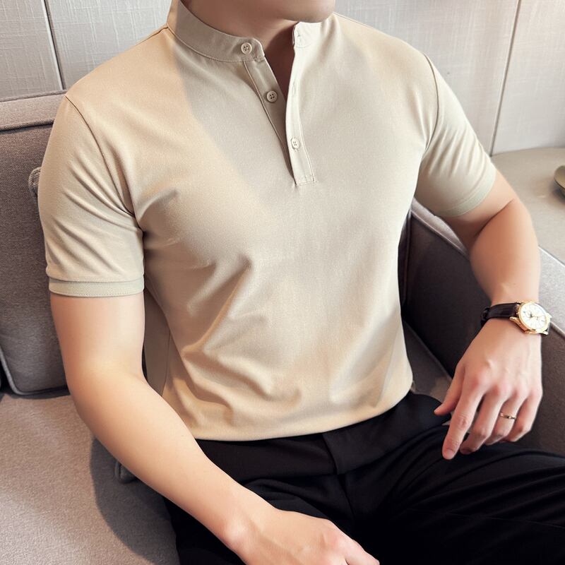 バンドカラー 半袖ポロシャツ 6カラー V0282