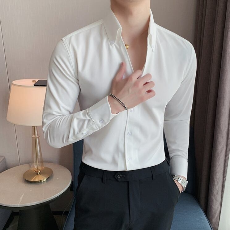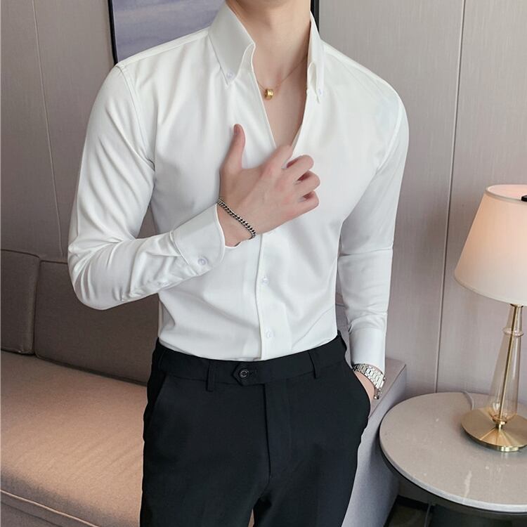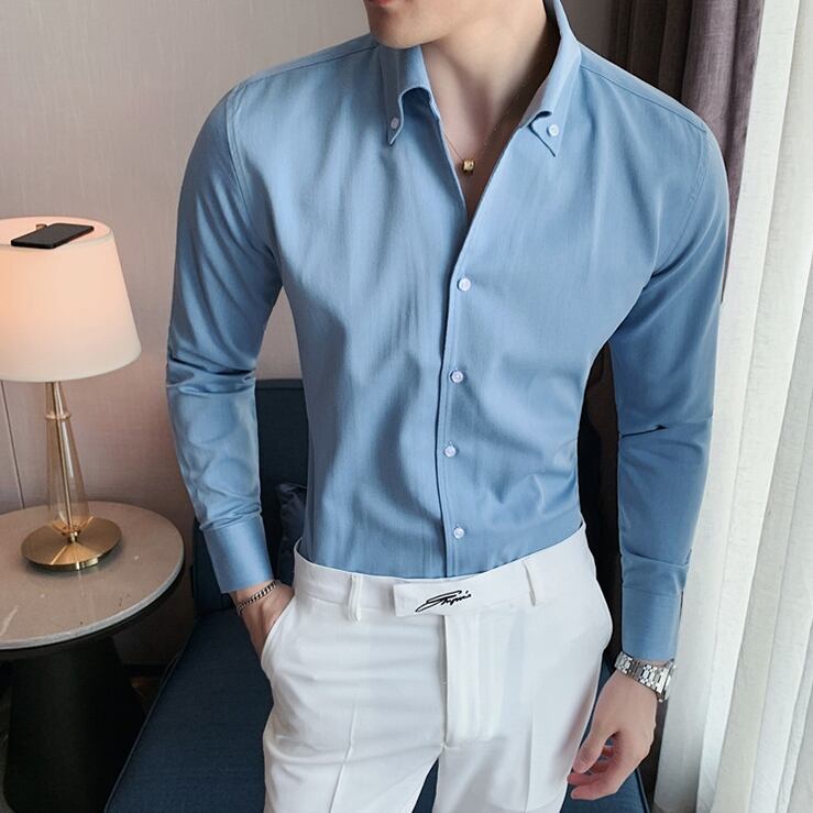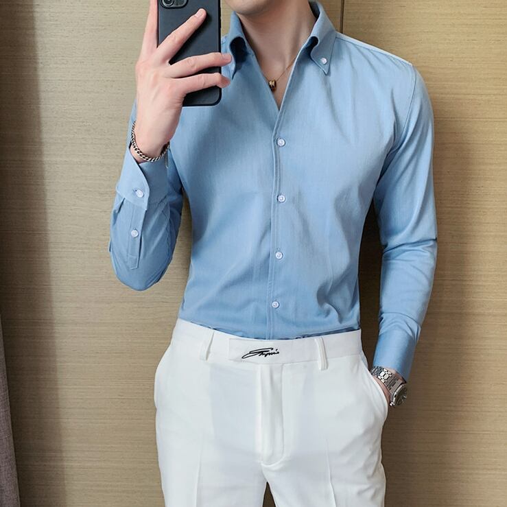 ロングスリーブスリムボタンダウンシャツ 3カラー V0280