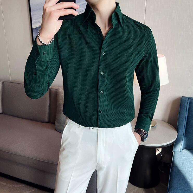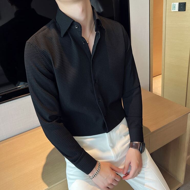 ワッフル織りの上品な生地が、着心地の良さと洗練されたスタイルを両立させた長袖シャツ。