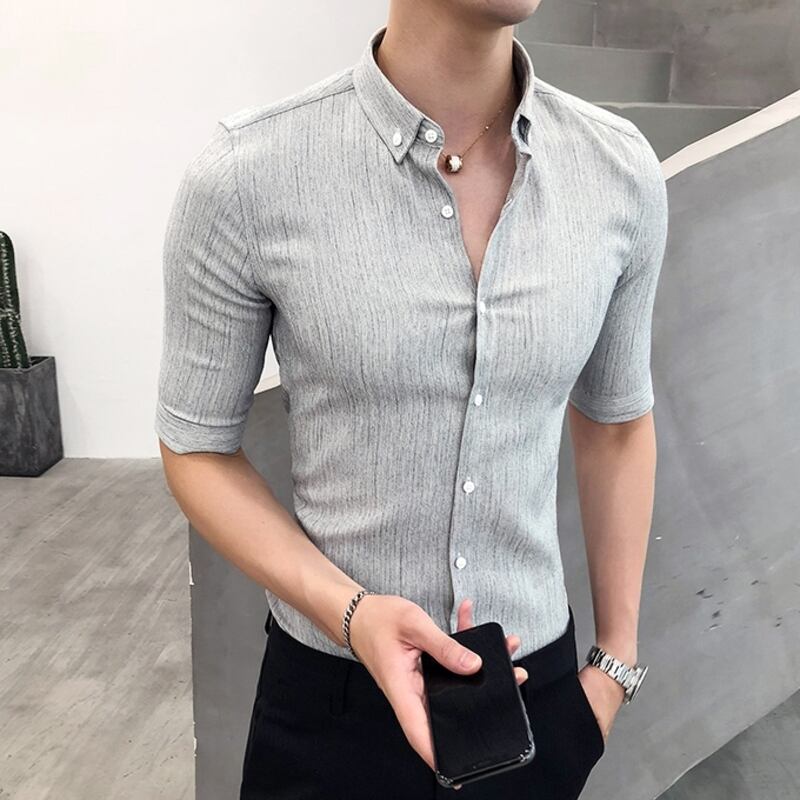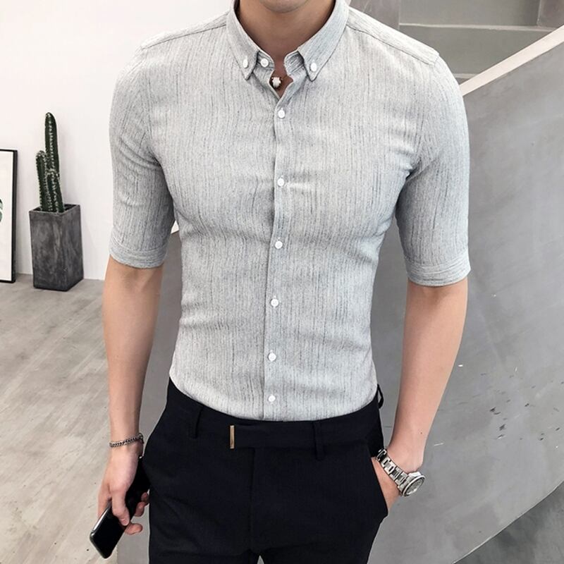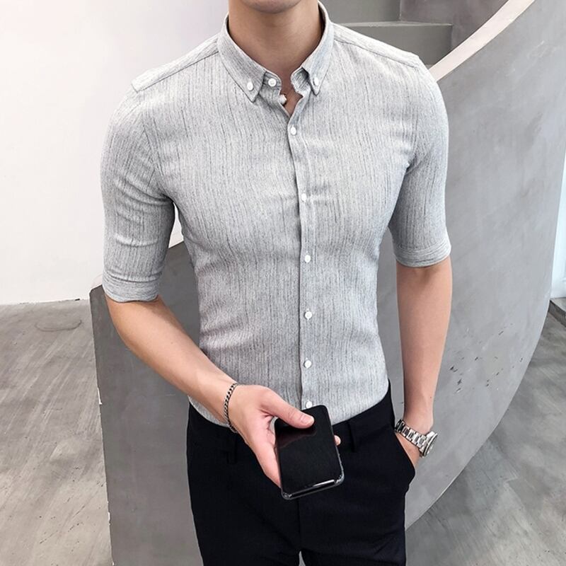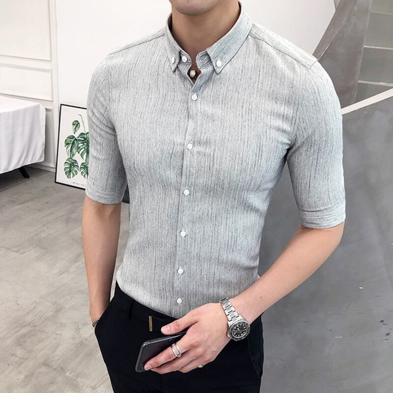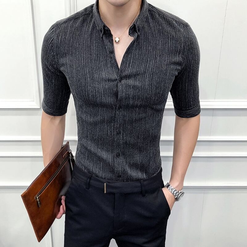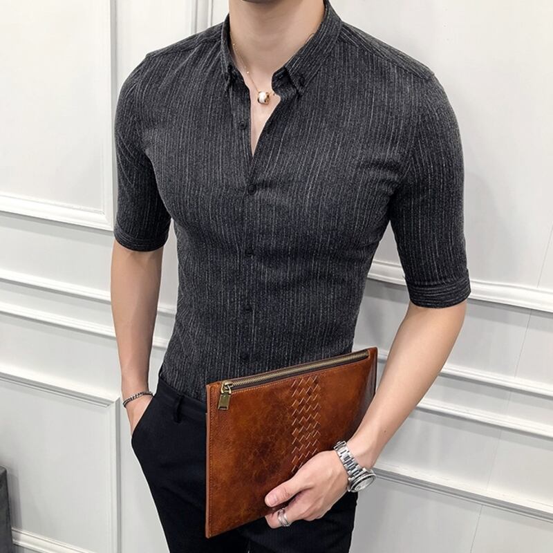 洗練された七分袖ストライプシャツで、スマートな着こなしを。