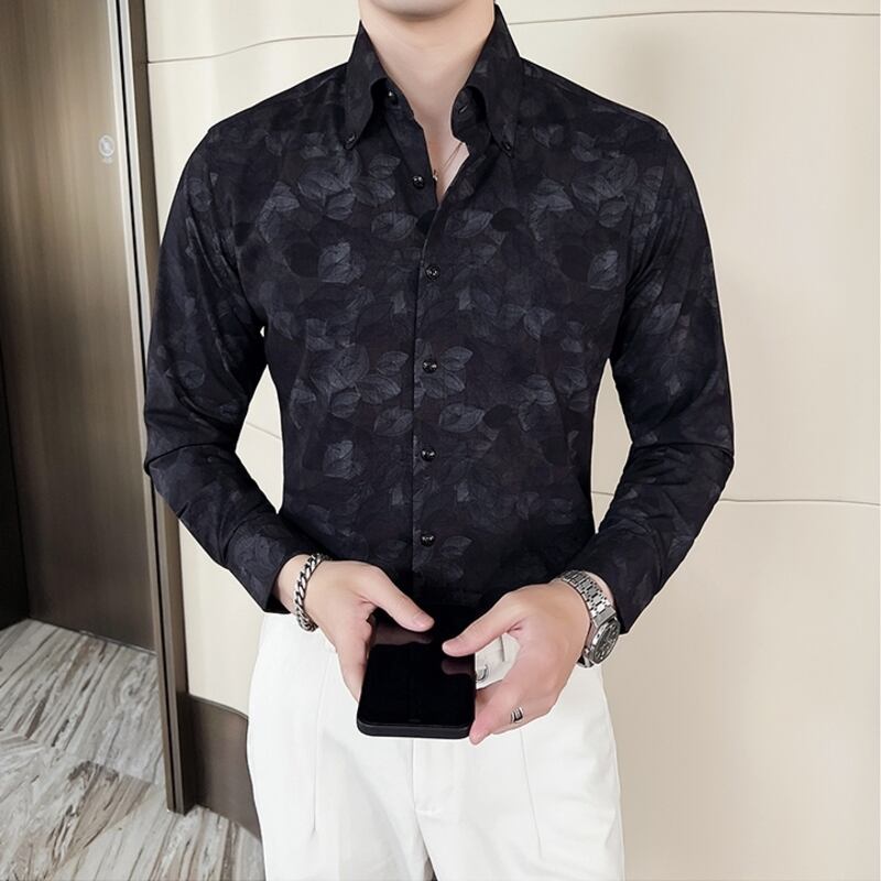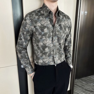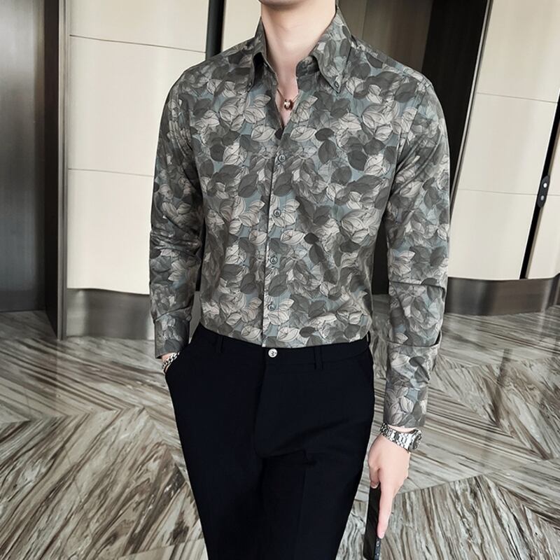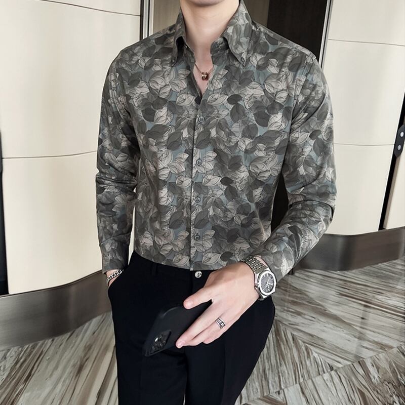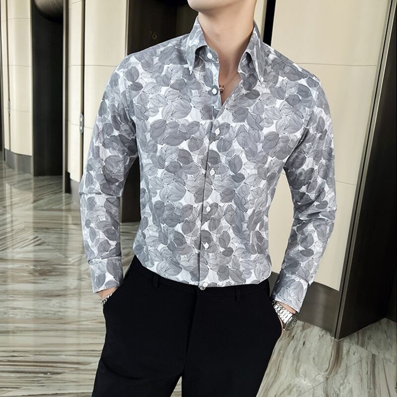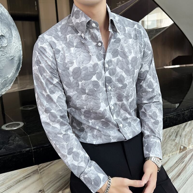 洗練されたリーフ柄が魅力のロングスリーブシャツ。