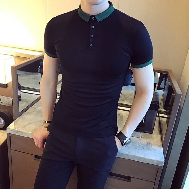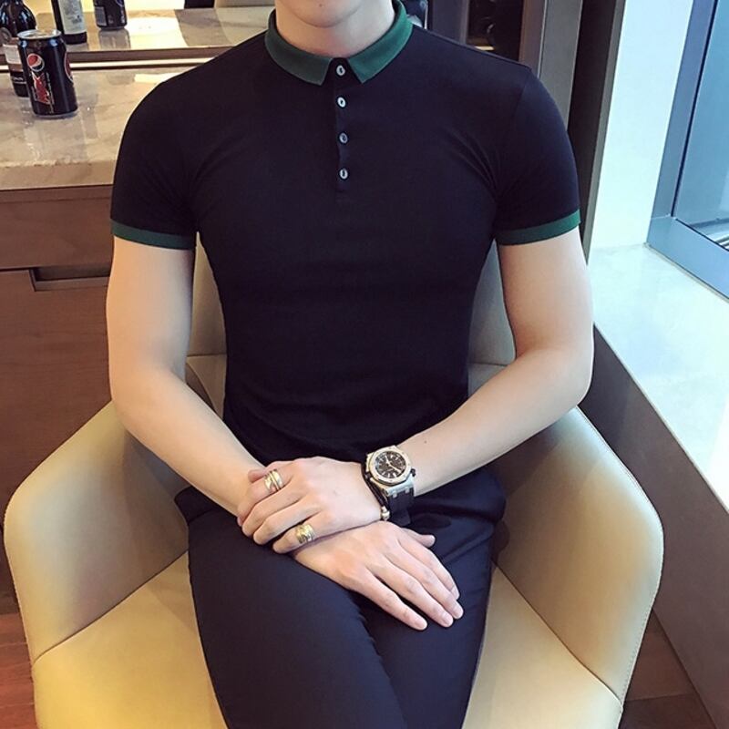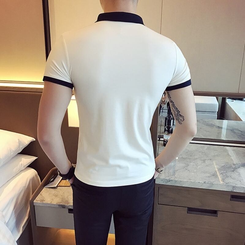カラーブロックパイピングポロシャツ 2カラー V0319