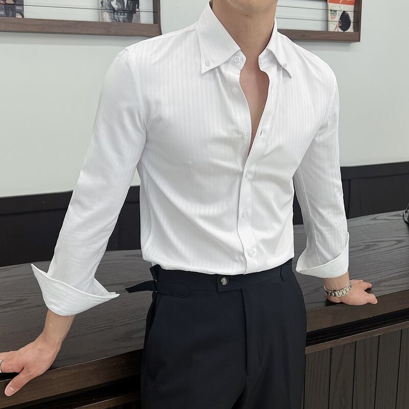 上品なストライプ柄が魅力のロングスリーブシャツ。