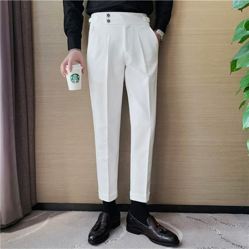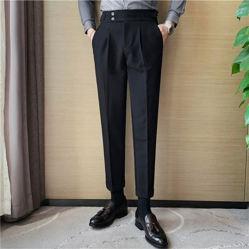 洗練されたストレートシルエットと、ハイウエストデザインがスタイルを引き立ててくれるスーツパンツです。
