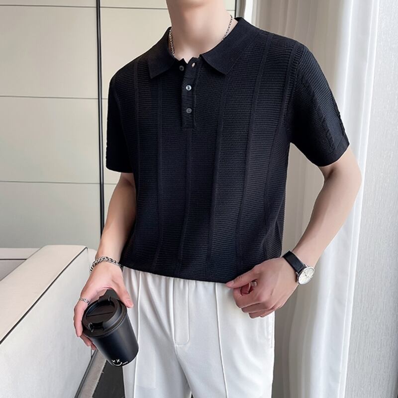 リブニット素材が上品な印象を与え、カジュアルながらも洗練されたスタイルを演出します。