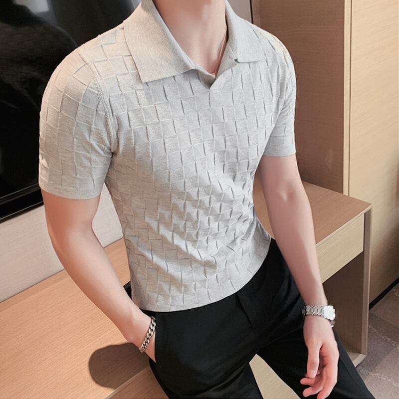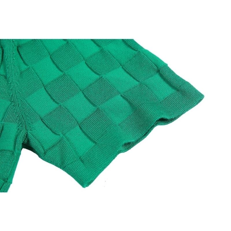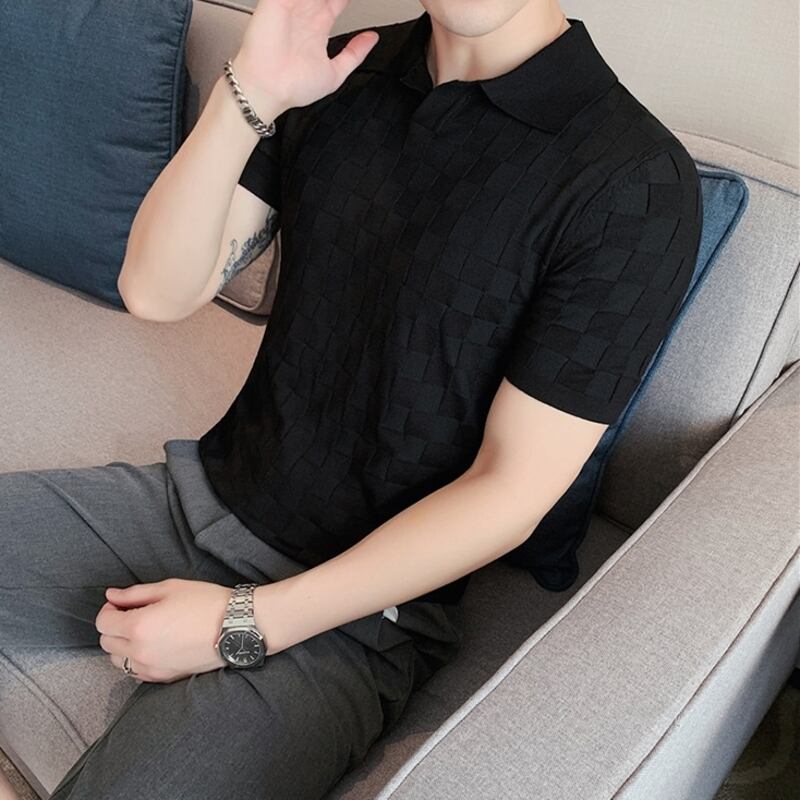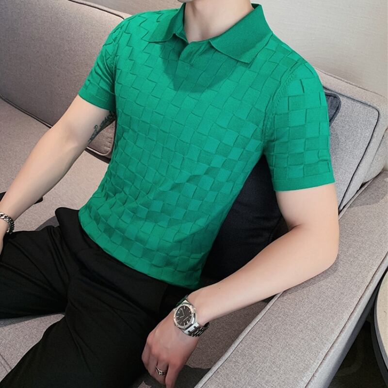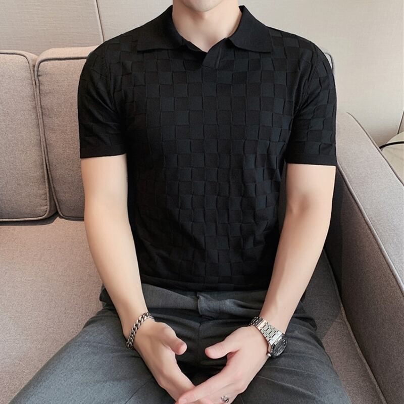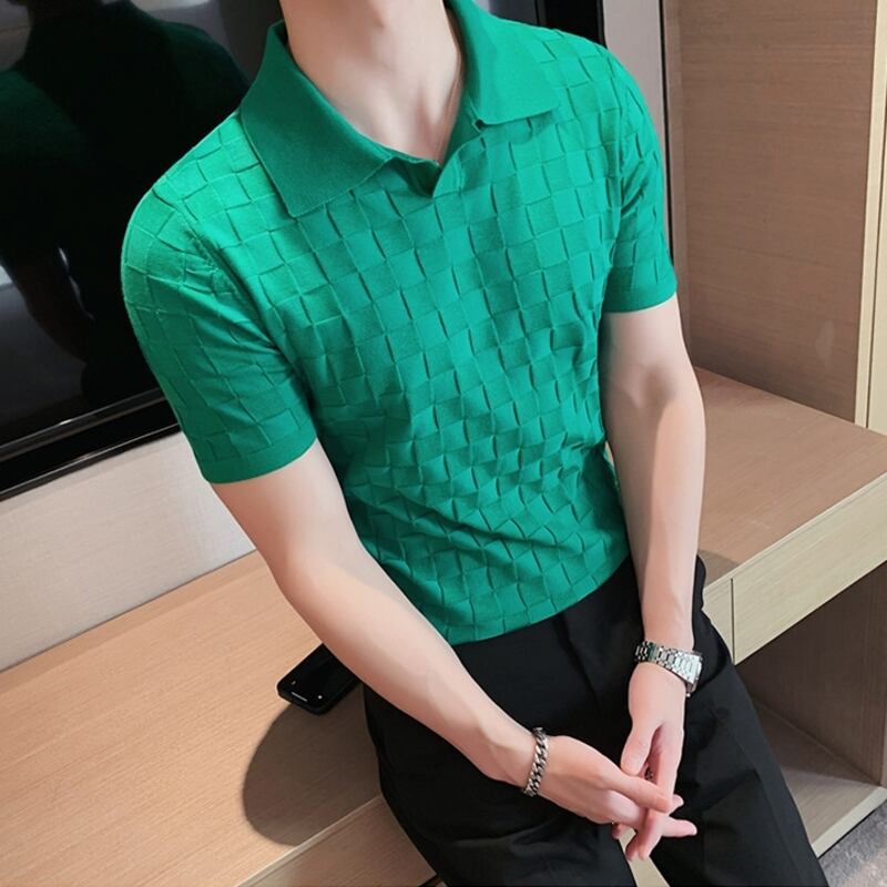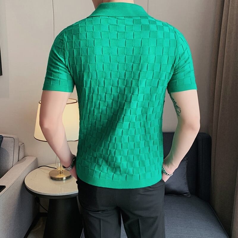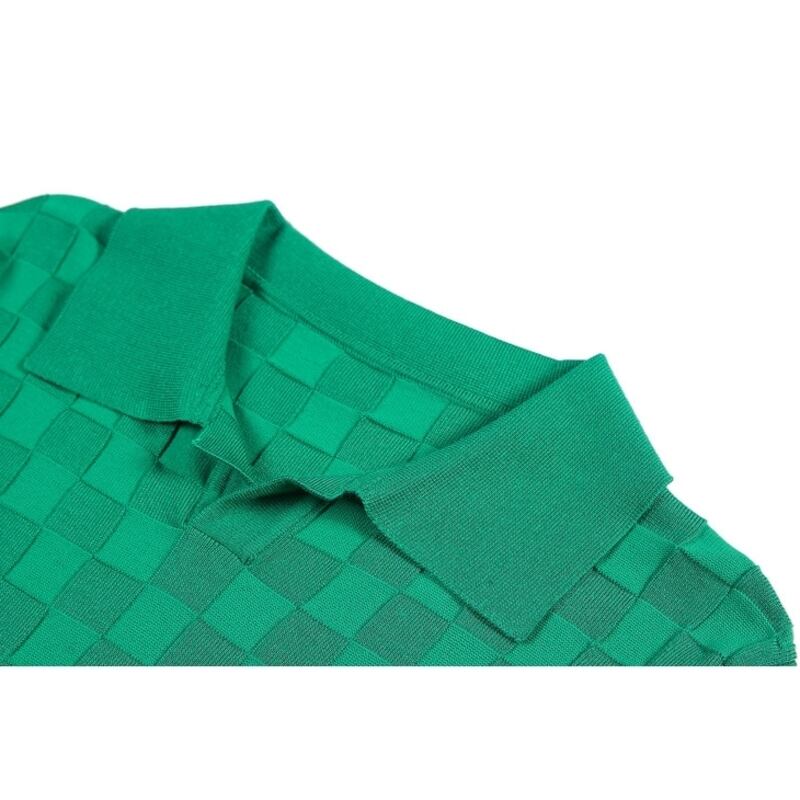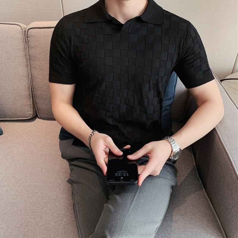 幾何柄ニットショートスリーブポロシャツ 3カラー V0460