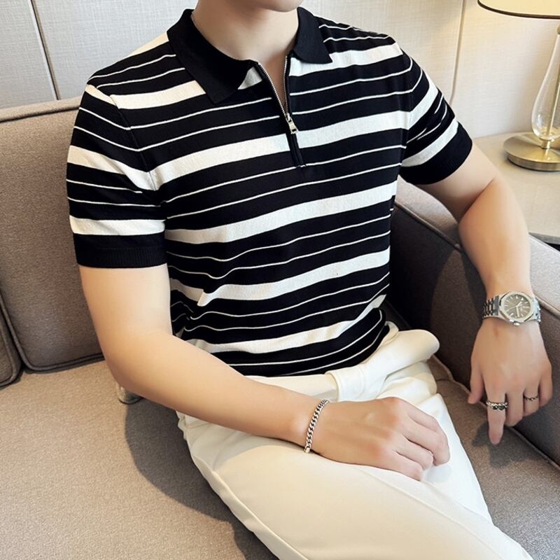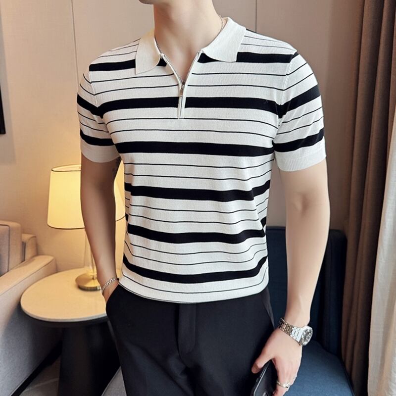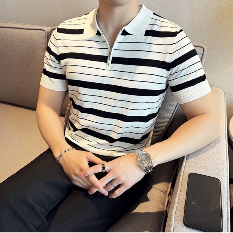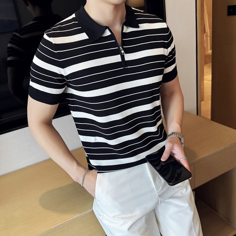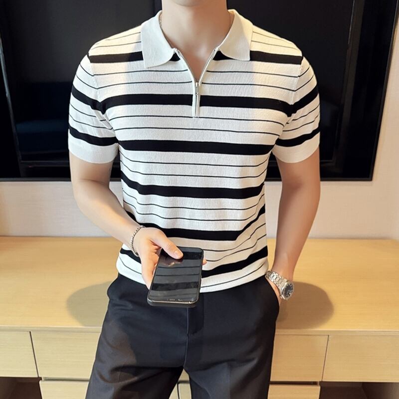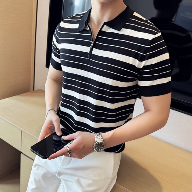 爽やかな着心地と洗練されたデザインが魅力の半袖ニットポロシャツ。