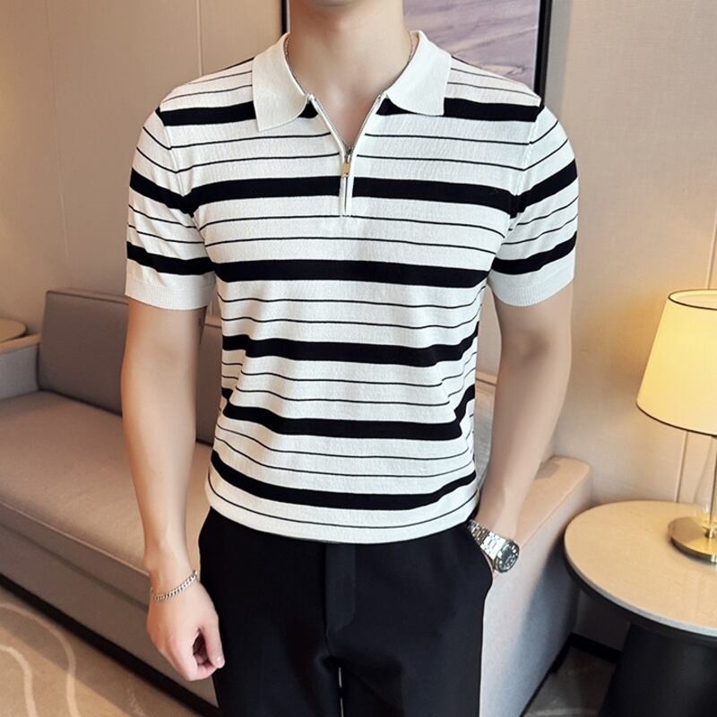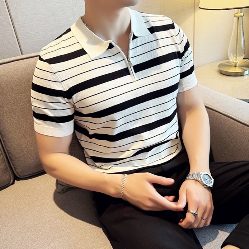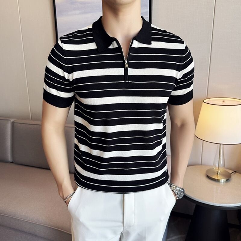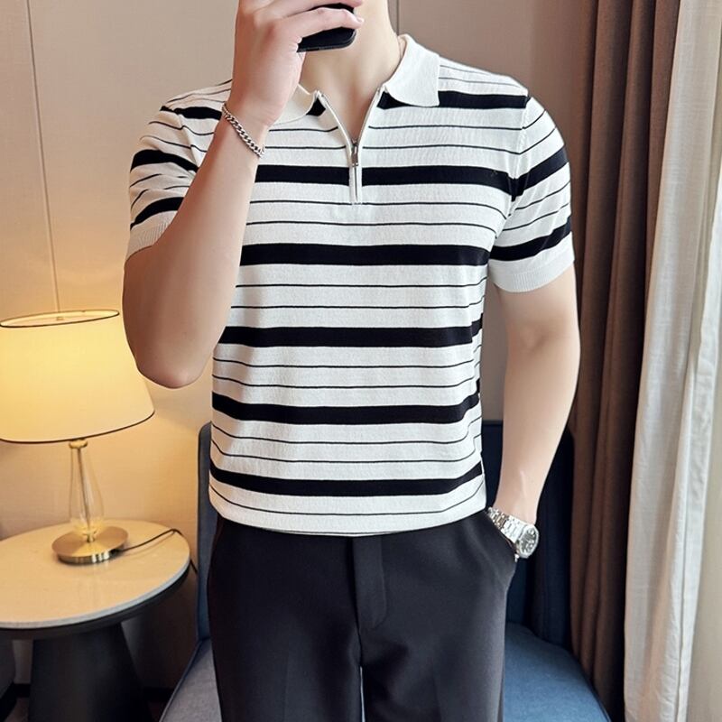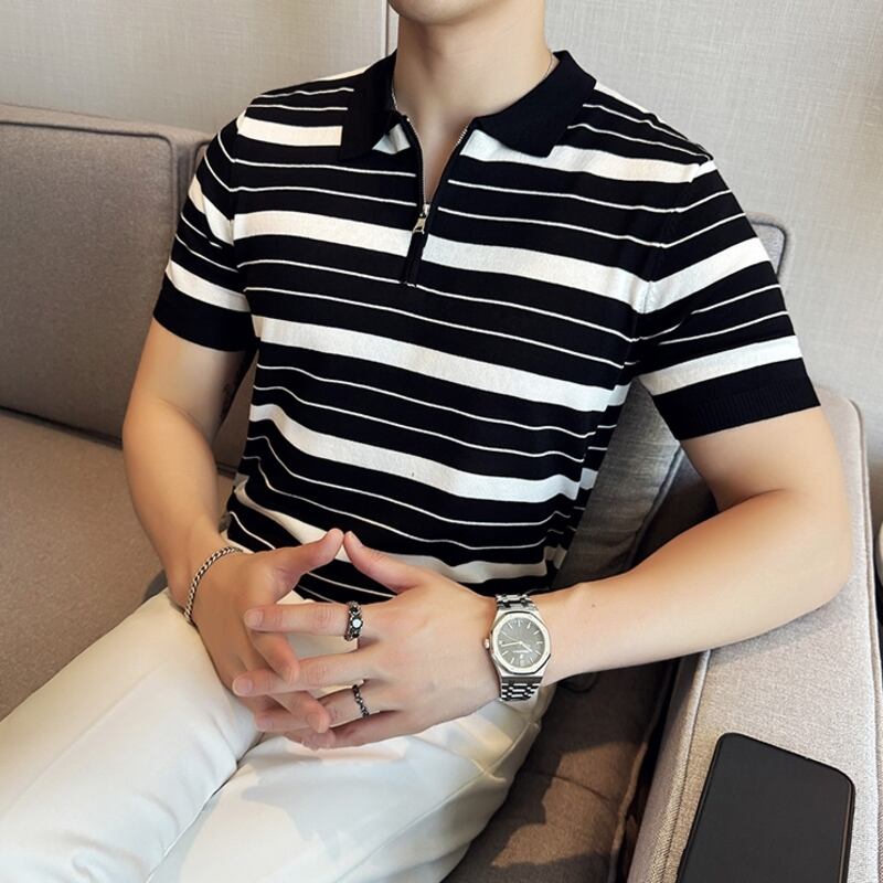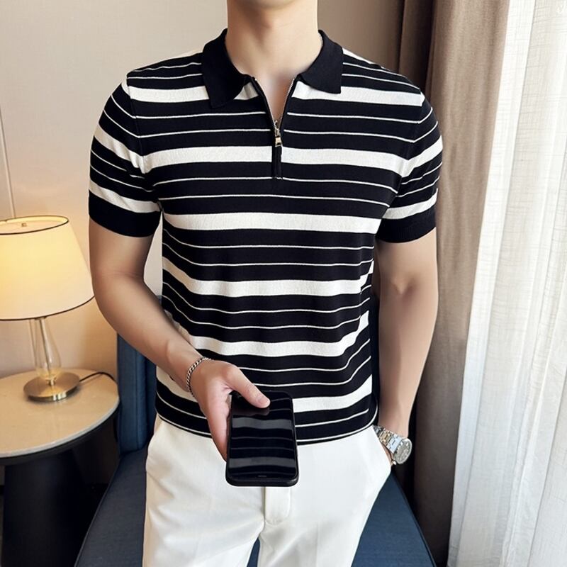 爽やかな着心地と洗練されたデザインが魅力の半袖ニットポロシャツ。