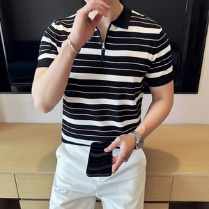ボーダー柄ハーフジップポロシャツ 2カラー V0461