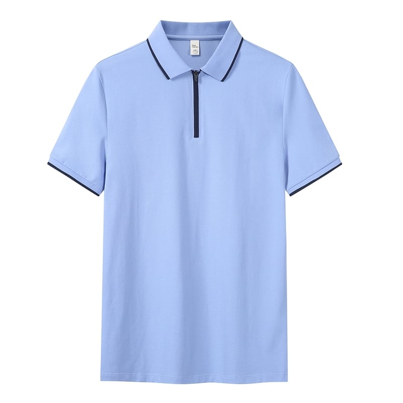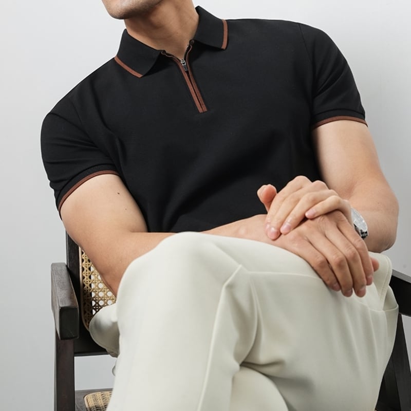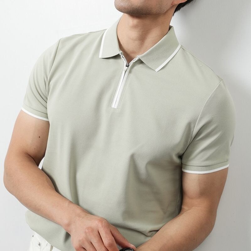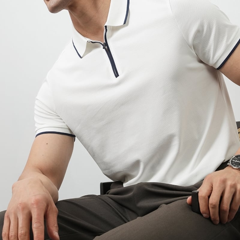 洗練されたデザインと着心地の良さを両立した半袖ジップアップポロシャツ。