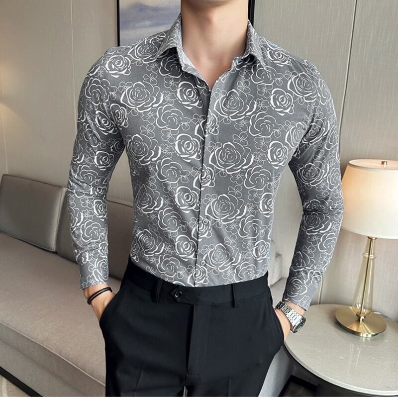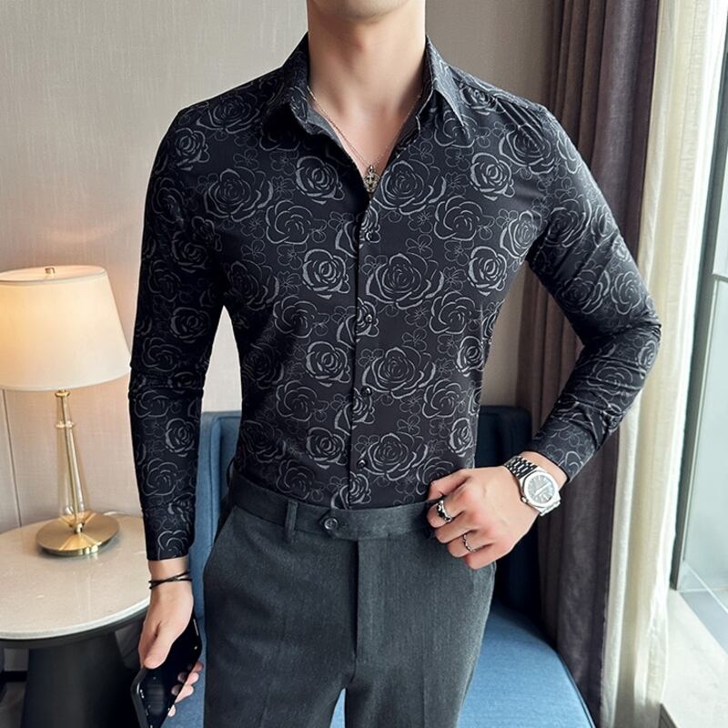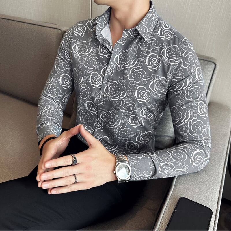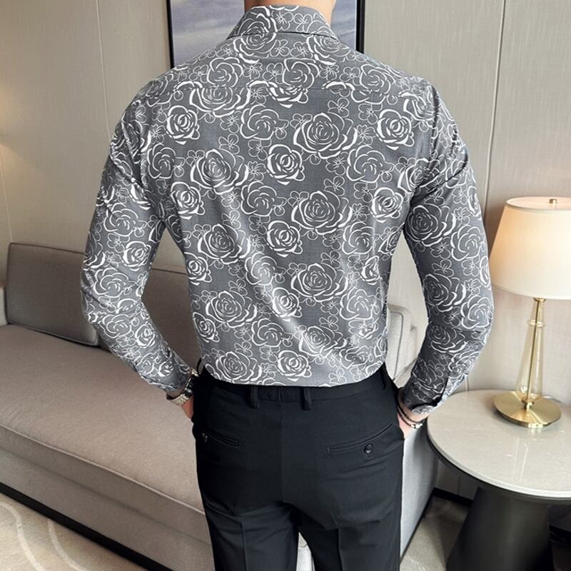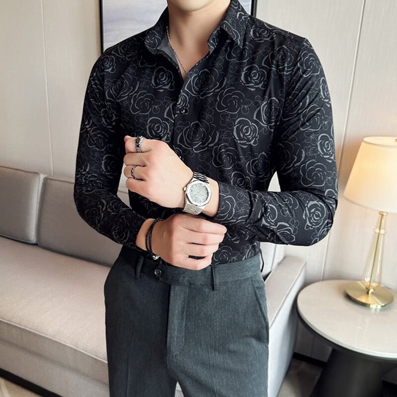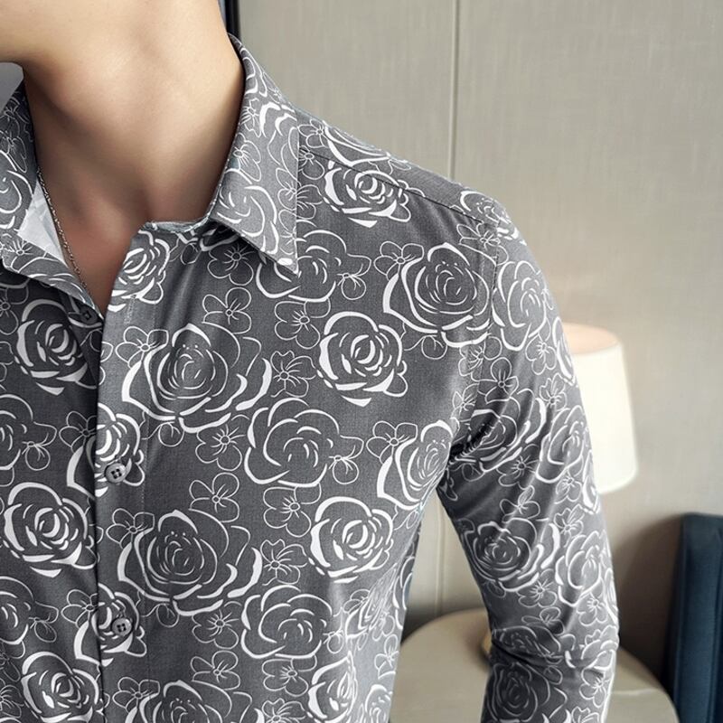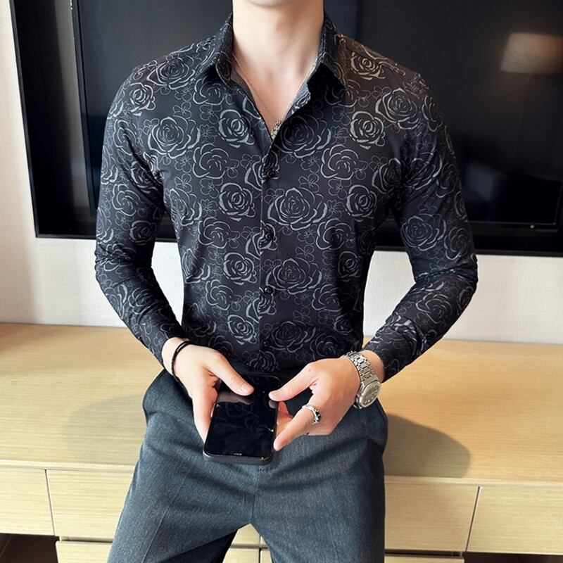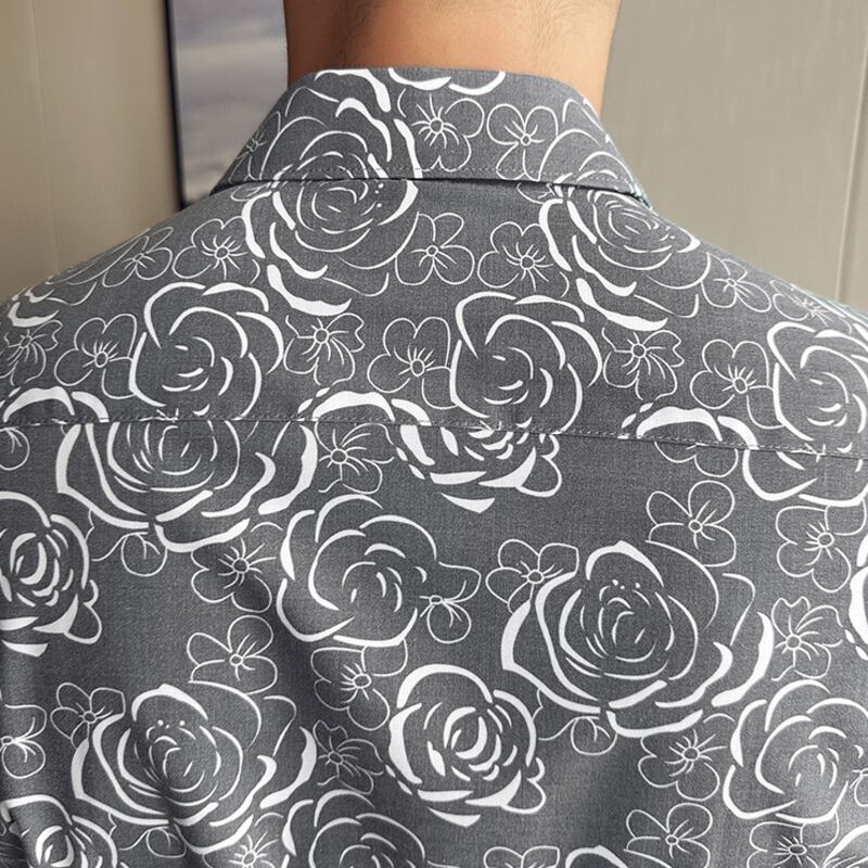 ローズ柄がスタイリッシュなレギュラーフィットシャツは、あらゆるシーンに活躍します。