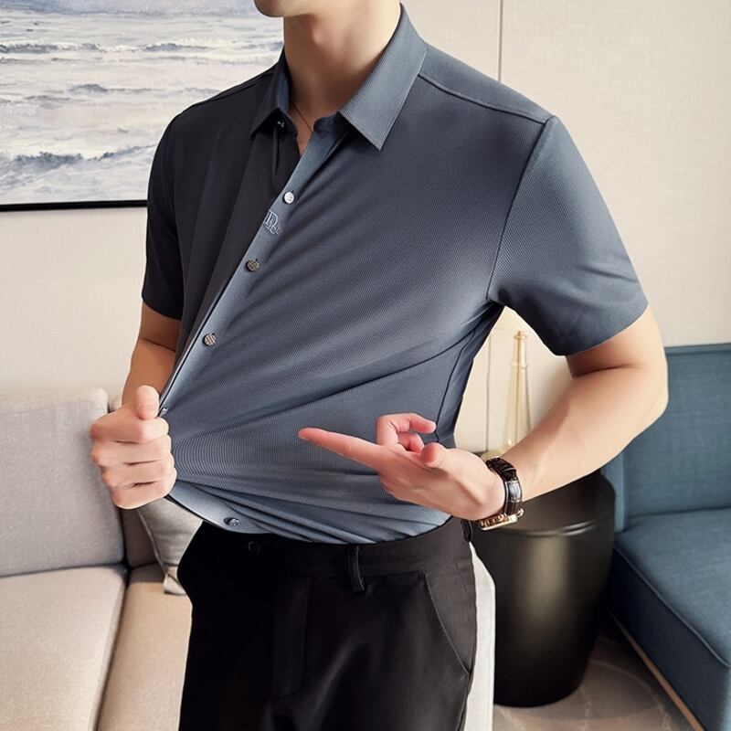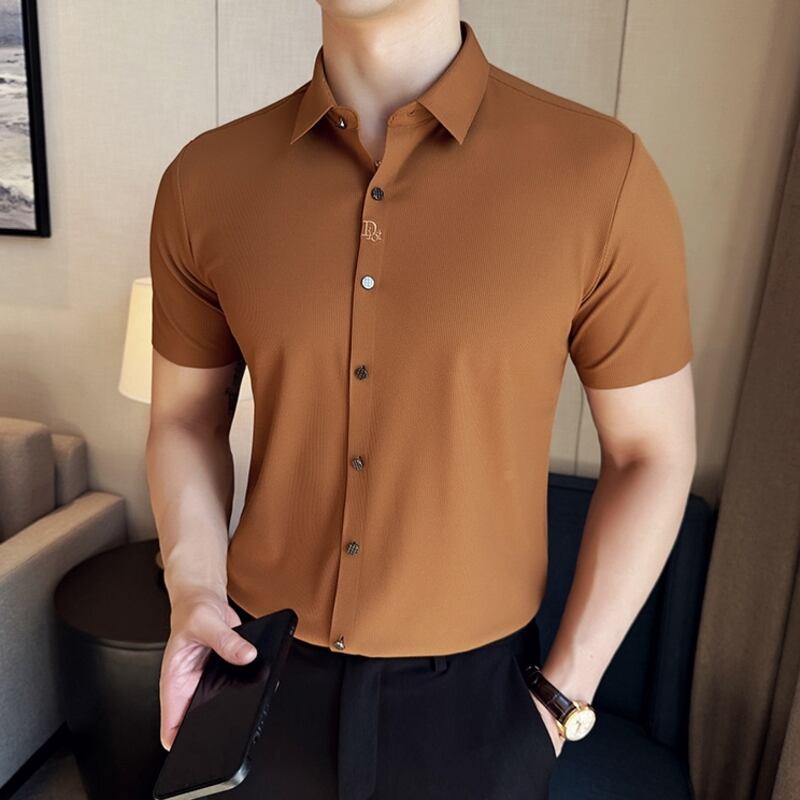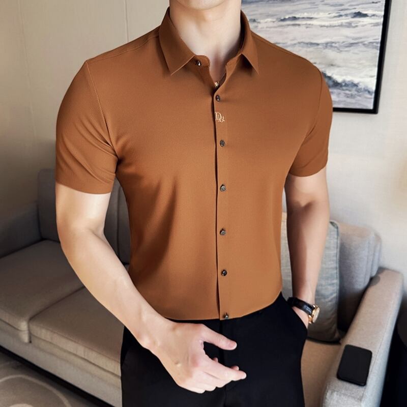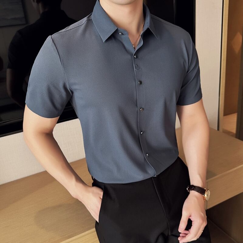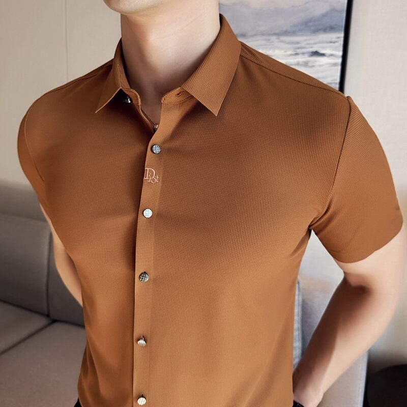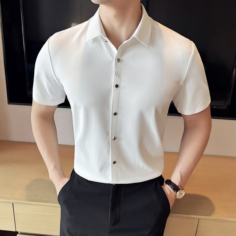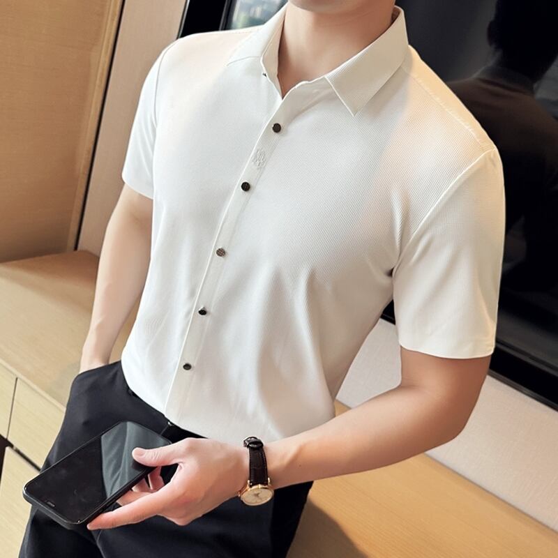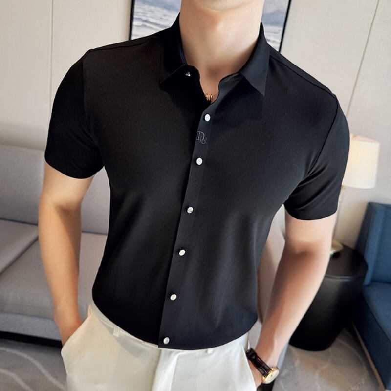 さりげない刺繍入りのフロントデザインが、シンプルで洗練されたデザインのシャツ。