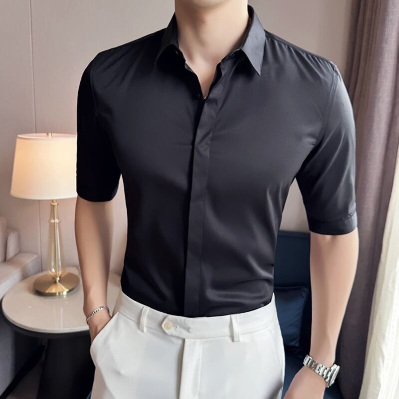 フライフロントの半袖シャツは、ストレートシルエットで着こなしやすく様々なシーンで活躍します。
