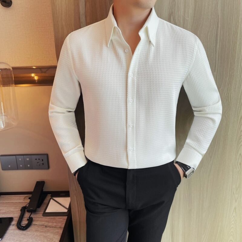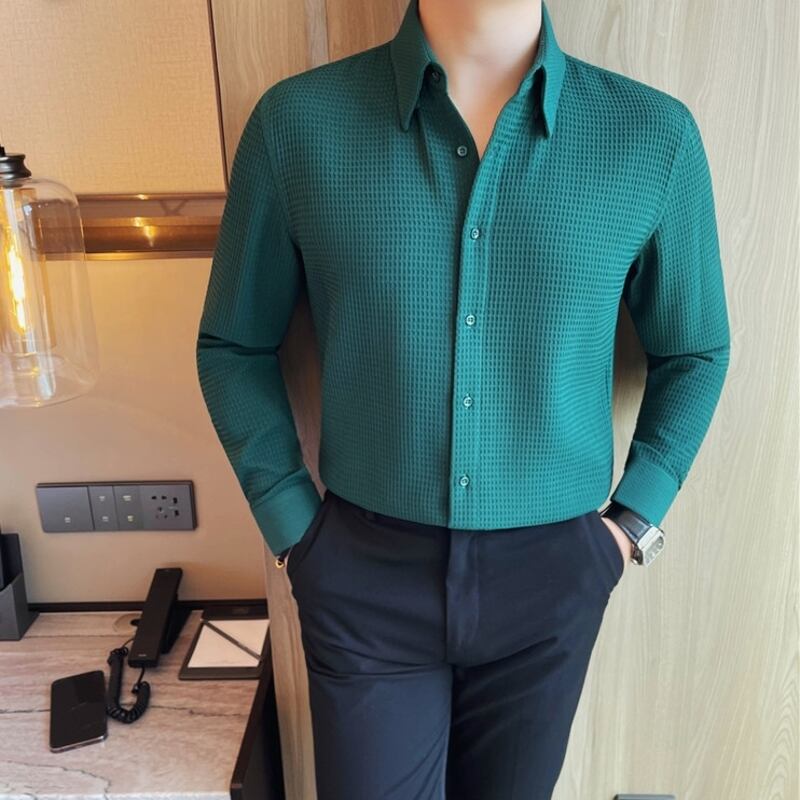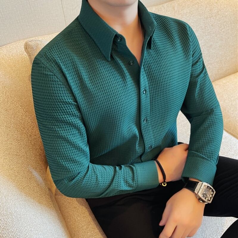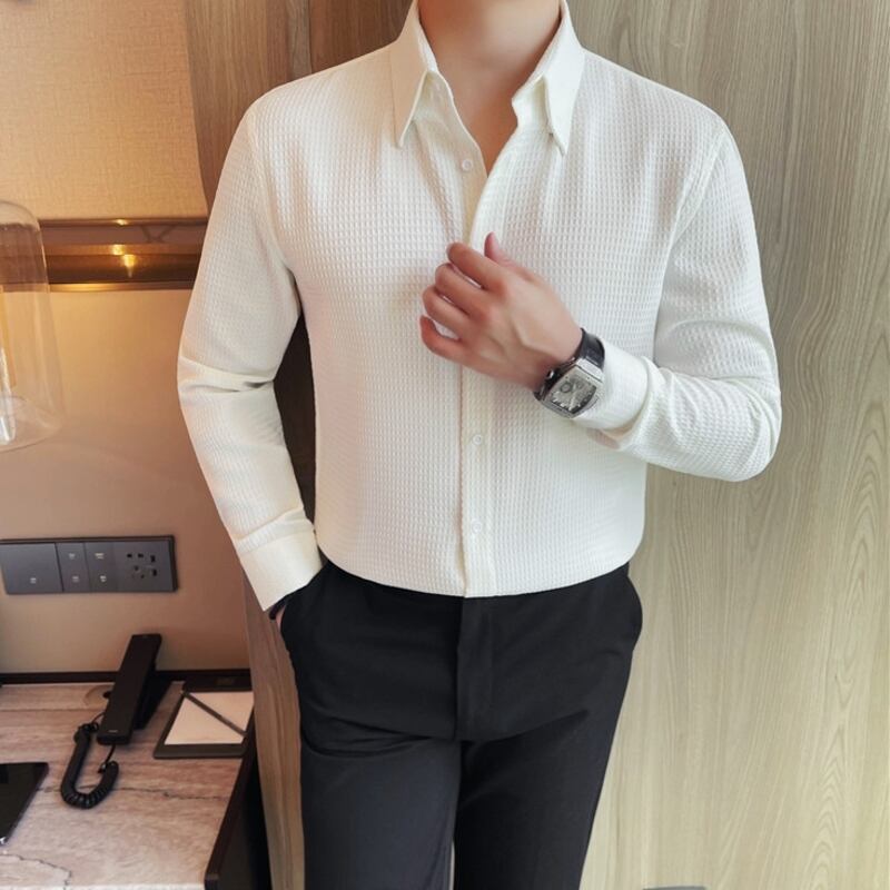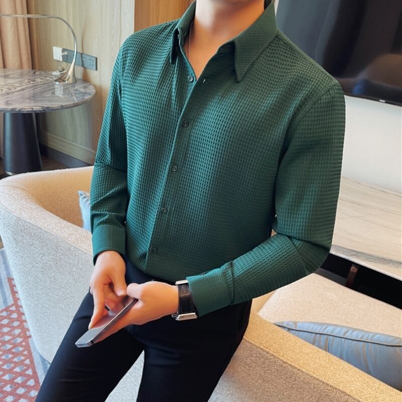 ワッフル織りの生地が上品な質感を醸し出し、ビジネスシーンからカジュアルな場面まで幅広く活躍します。