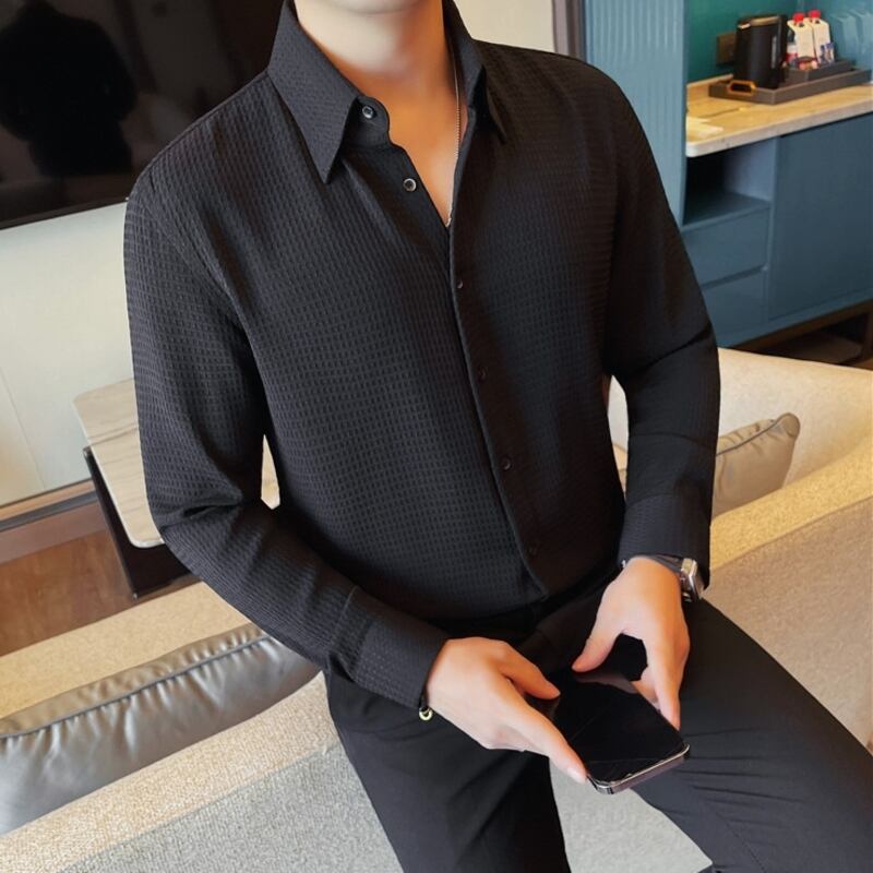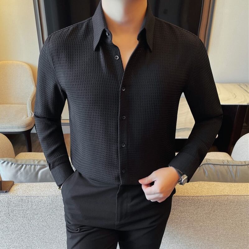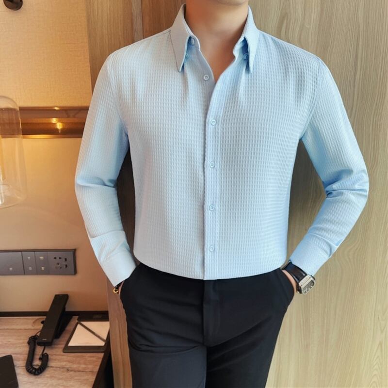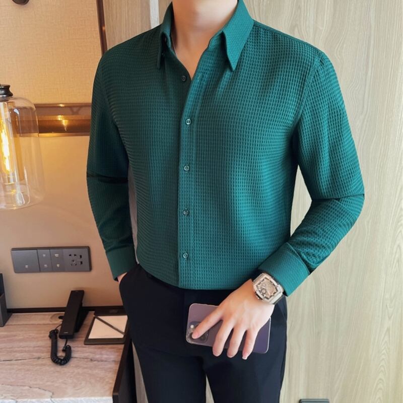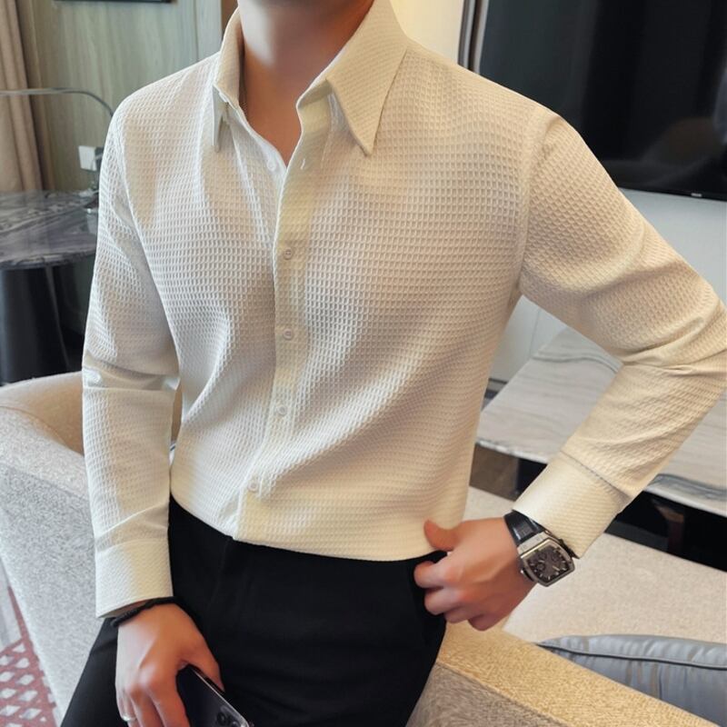 ワッフル織りの生地が上品な質感を醸し出し、ビジネスシーンからカジュアルな場面まで幅広く活躍します。