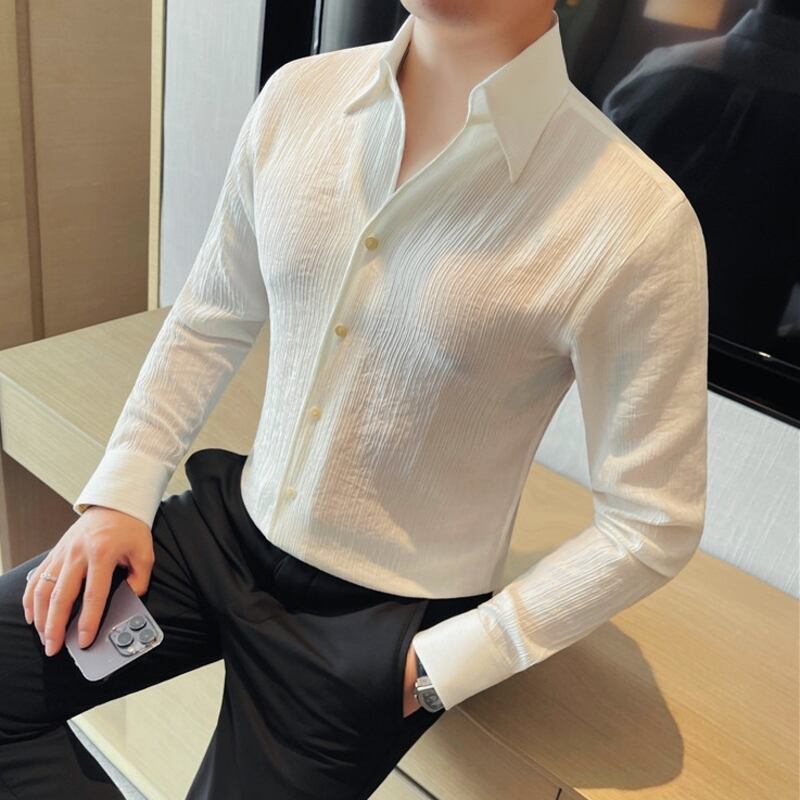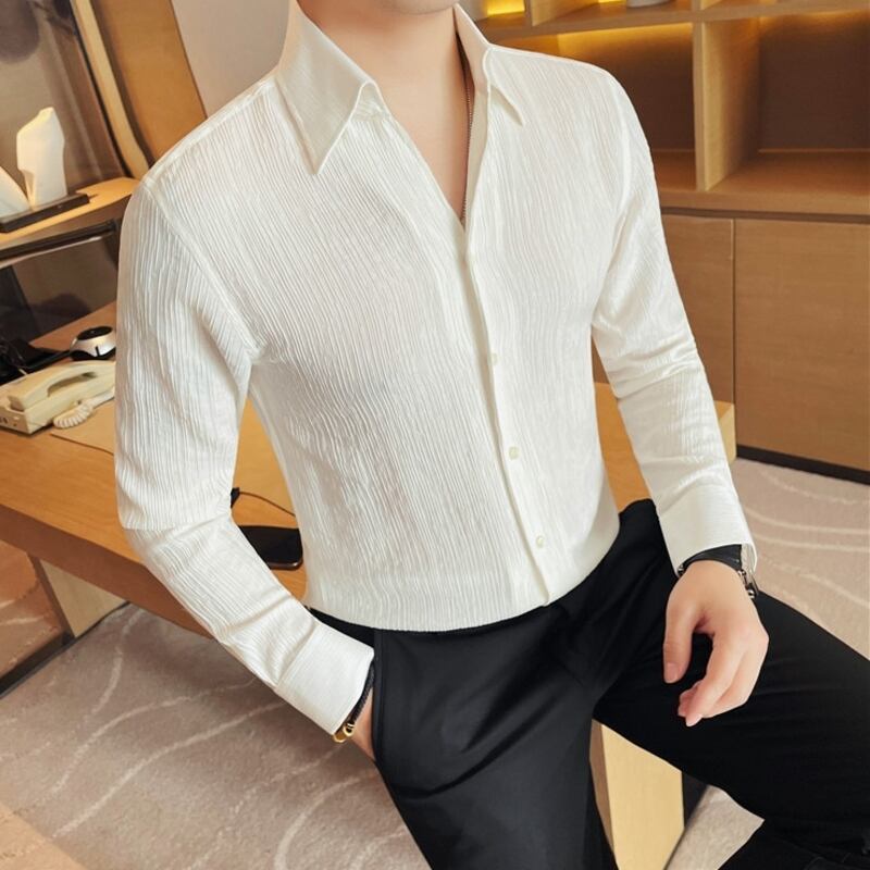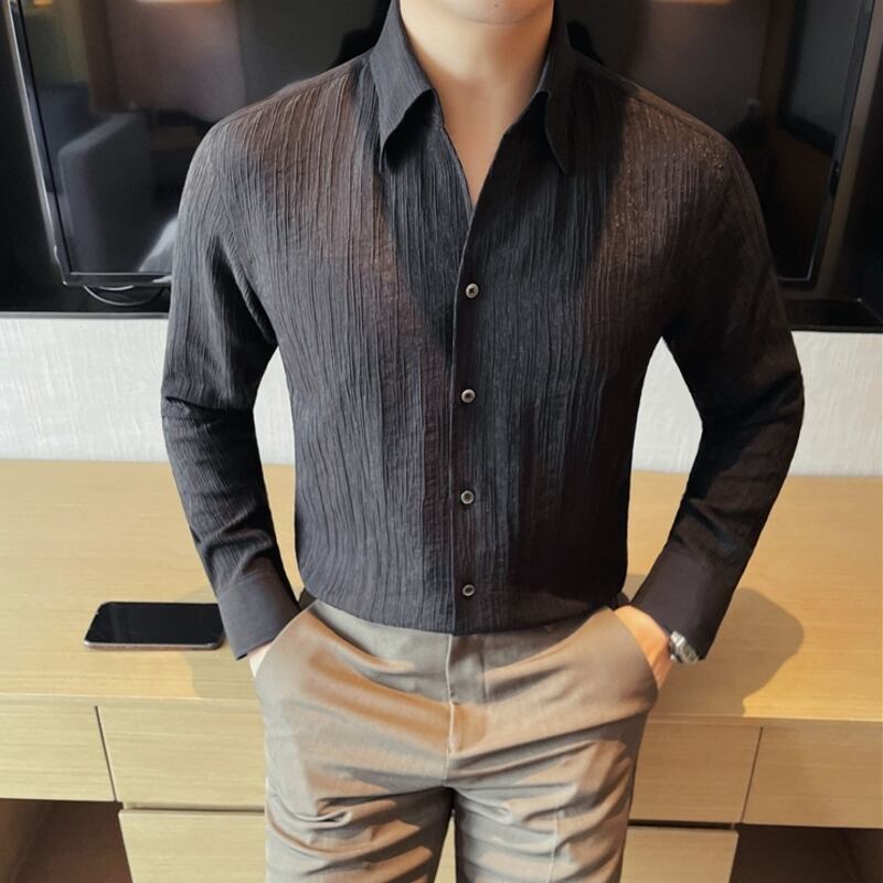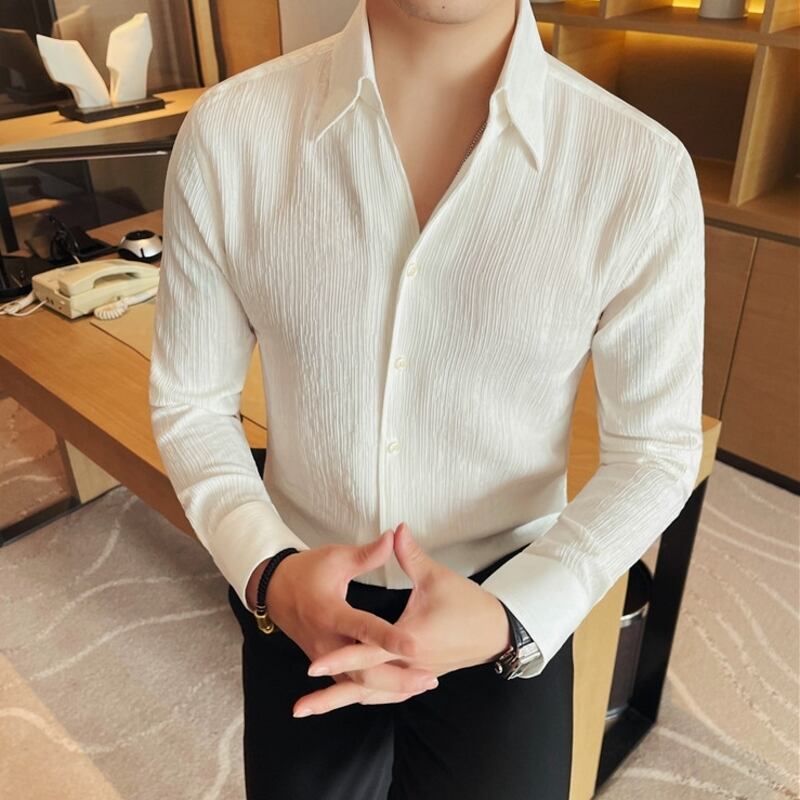 オフィスでのビジネスシーンから、休日のカジュアルな集まりまで、幅広いスタイルに対応できる万能アイテムです。