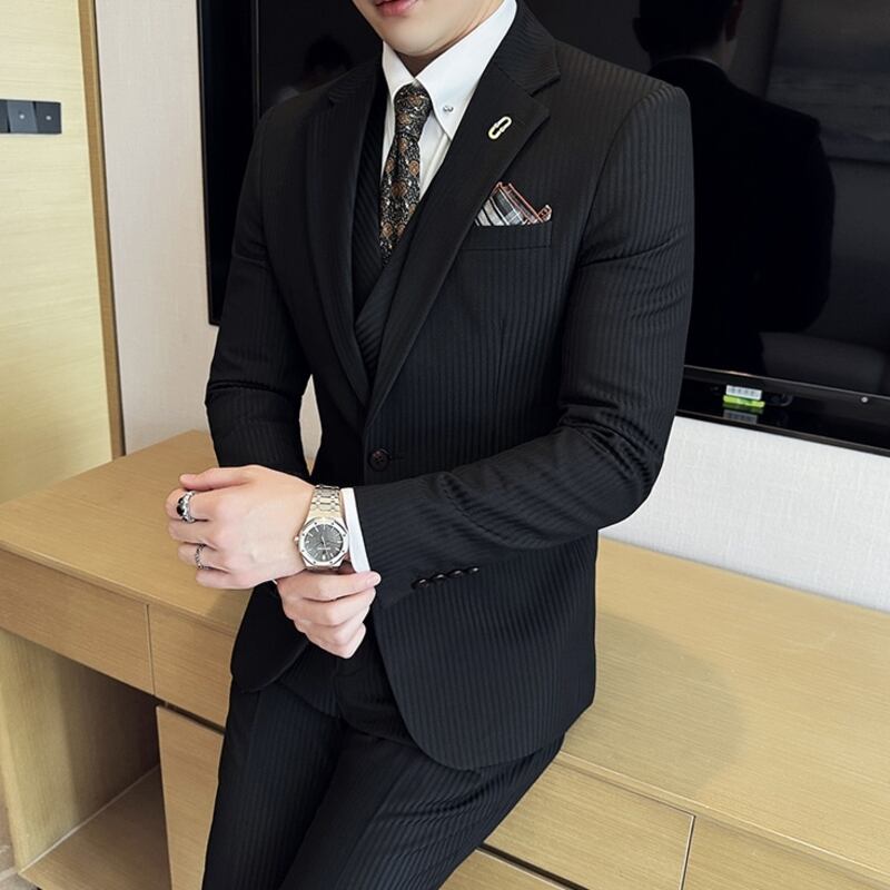 スリーピース ストライプスリムフィットスーツ 3カラー V0006