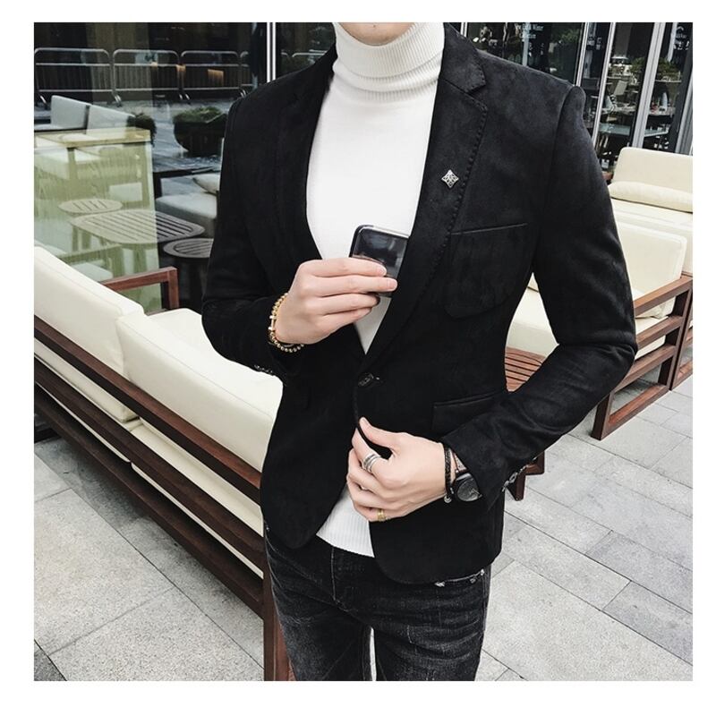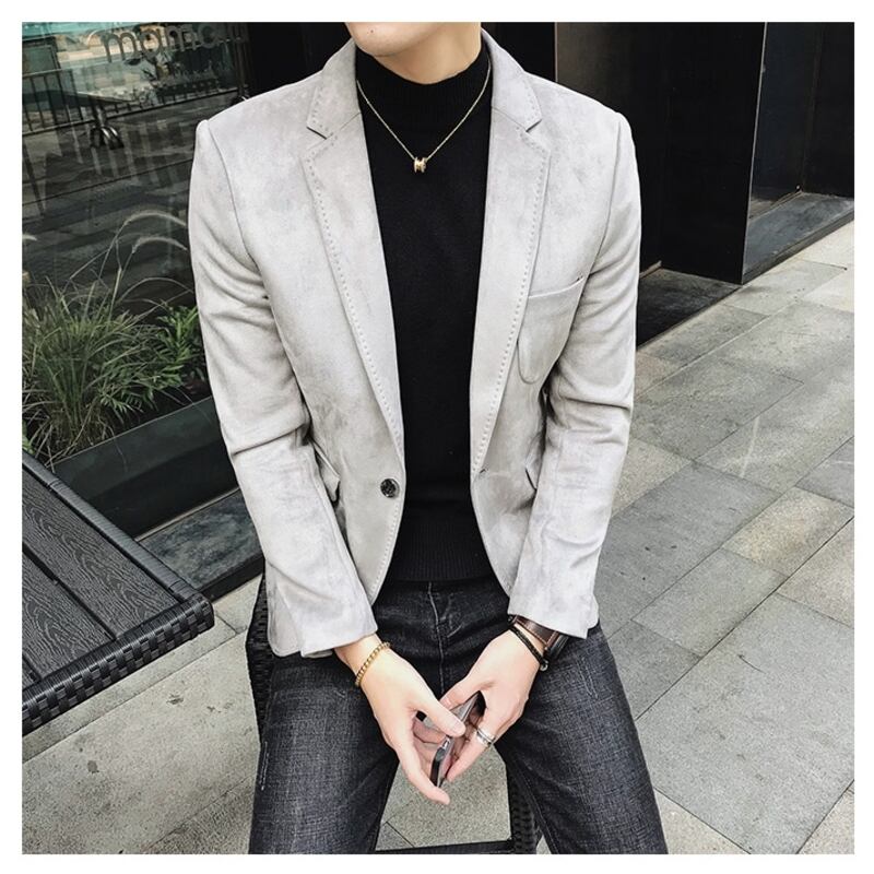 スエードが滑らかな質感で、バックはセンターベントのすっきりシンプルなシルエットに仕立てました。