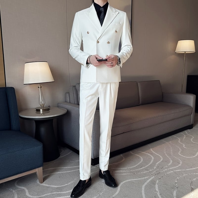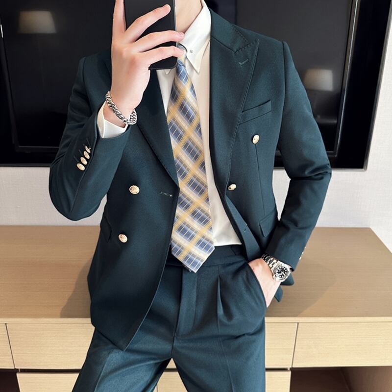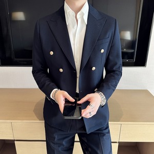 ツーピース ダブルブレストスリムフィットスーツ 4カラー V0133