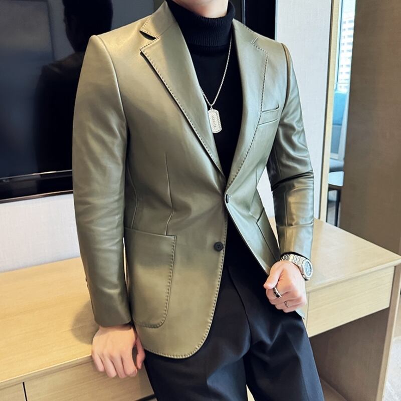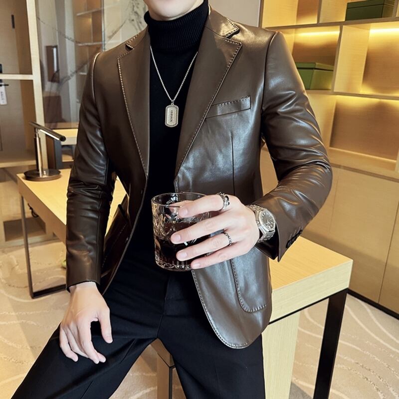 スリムフィットフェイクレザージャケット 3カラー V0139
