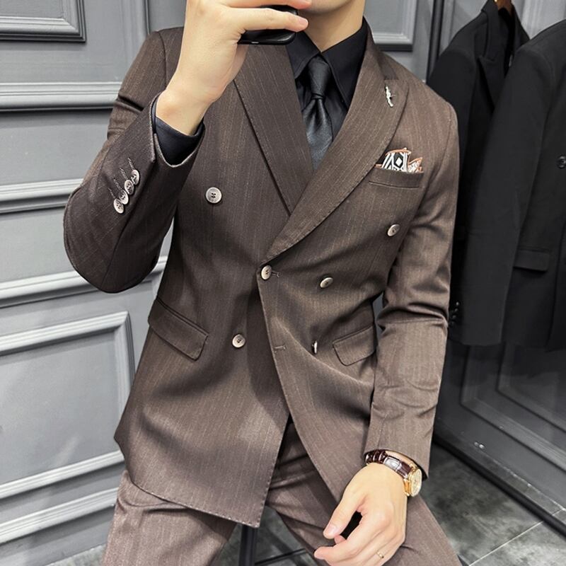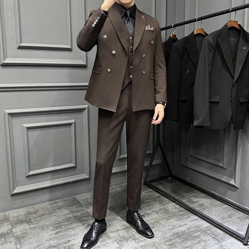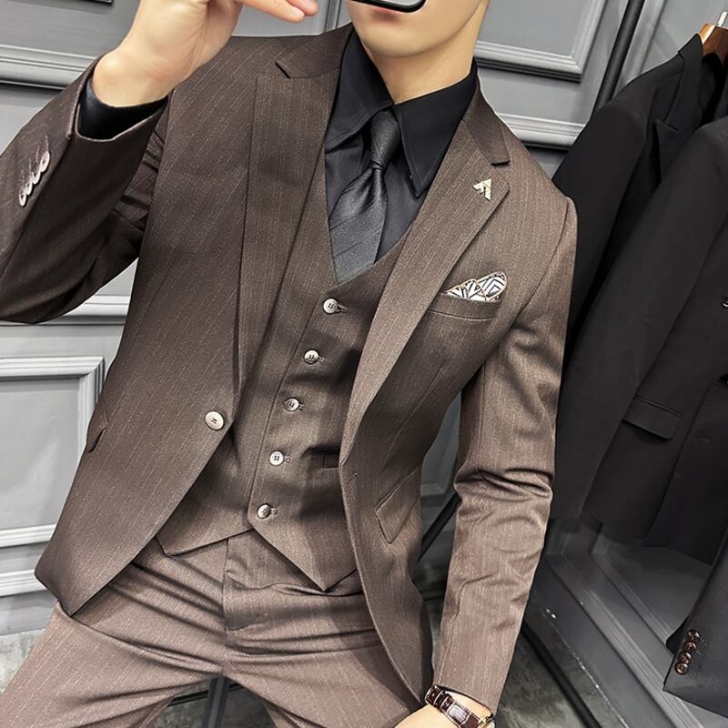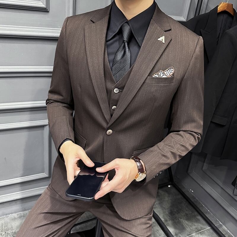 スリーピース シングルブレストストライプスーツ 3カラー V0191